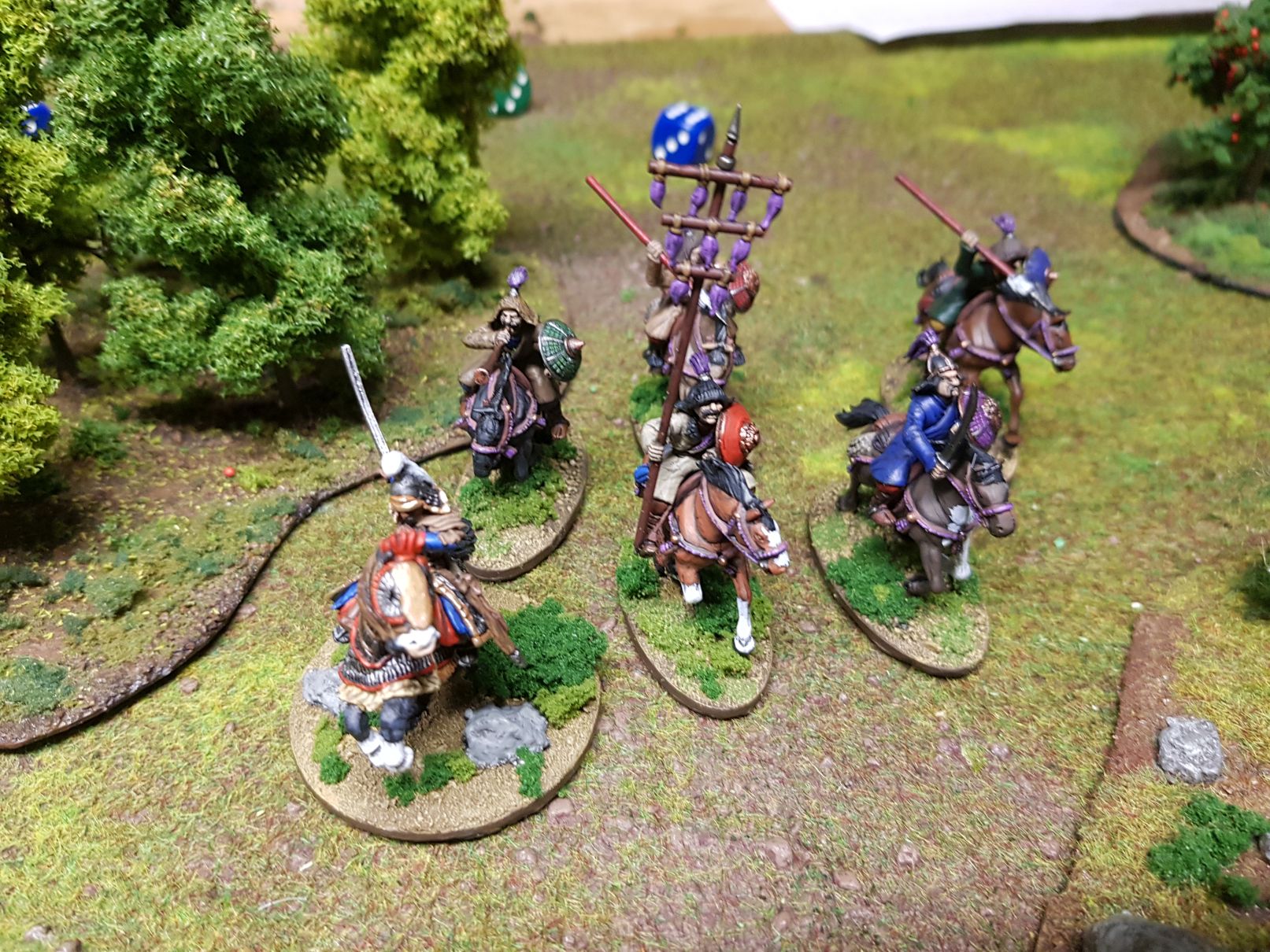 Den Vorteil erkennend, warf sich im direkten Anschluss der Ungolenhäuptling mit seiner Reitereinheit in den Nahkampf.
