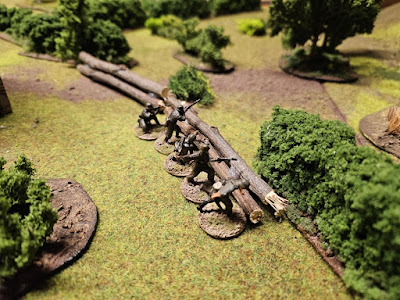 The scenario took place in Normandy. The Germans - parts of an infantry division - defended various terrain markers in the middle of the playing field. Here they occupied a "fortified house" and a 10-inch long improvised barricade that offered the player tough cover.