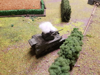 opened the firefight. The first Stuart had no chance and was destroyed.