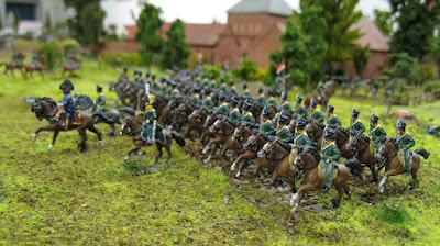 A cavalry squadron consists of 32 figures plus a trumpeter and an officer. 3 squadrons form a regiment.